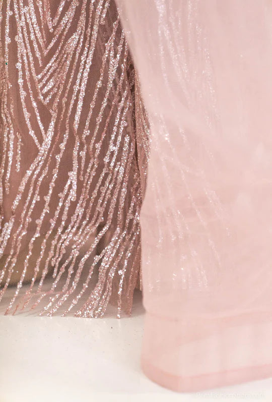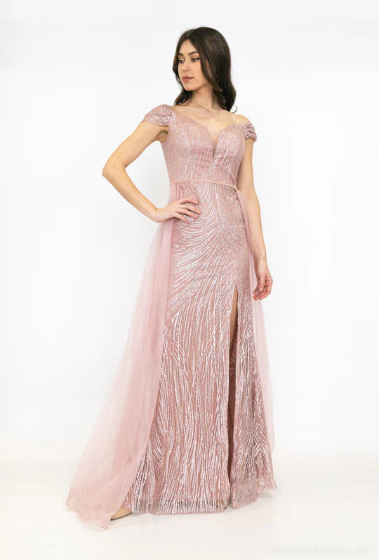 Notre robe de soirée est une valeur sur pour cette collection. En coupe sirène et motif pailleté, elle réponds à toute les exigences de vos clientes. Avec son style col bâteau et sa belle fente accompagnée de son drapé de tulle tout le long de la longueur, elle est la tenue parfaite pour briller en soirée.