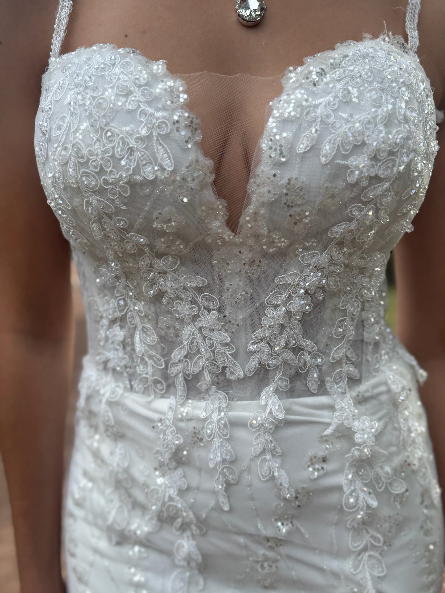 Laissez-vous séduire par cette robe de mariée modulable, alliant deux styles en une seule tenue : une coupe sirène glamour et une jupe amovible style princesse pour une transformation spectaculaire le jour J.