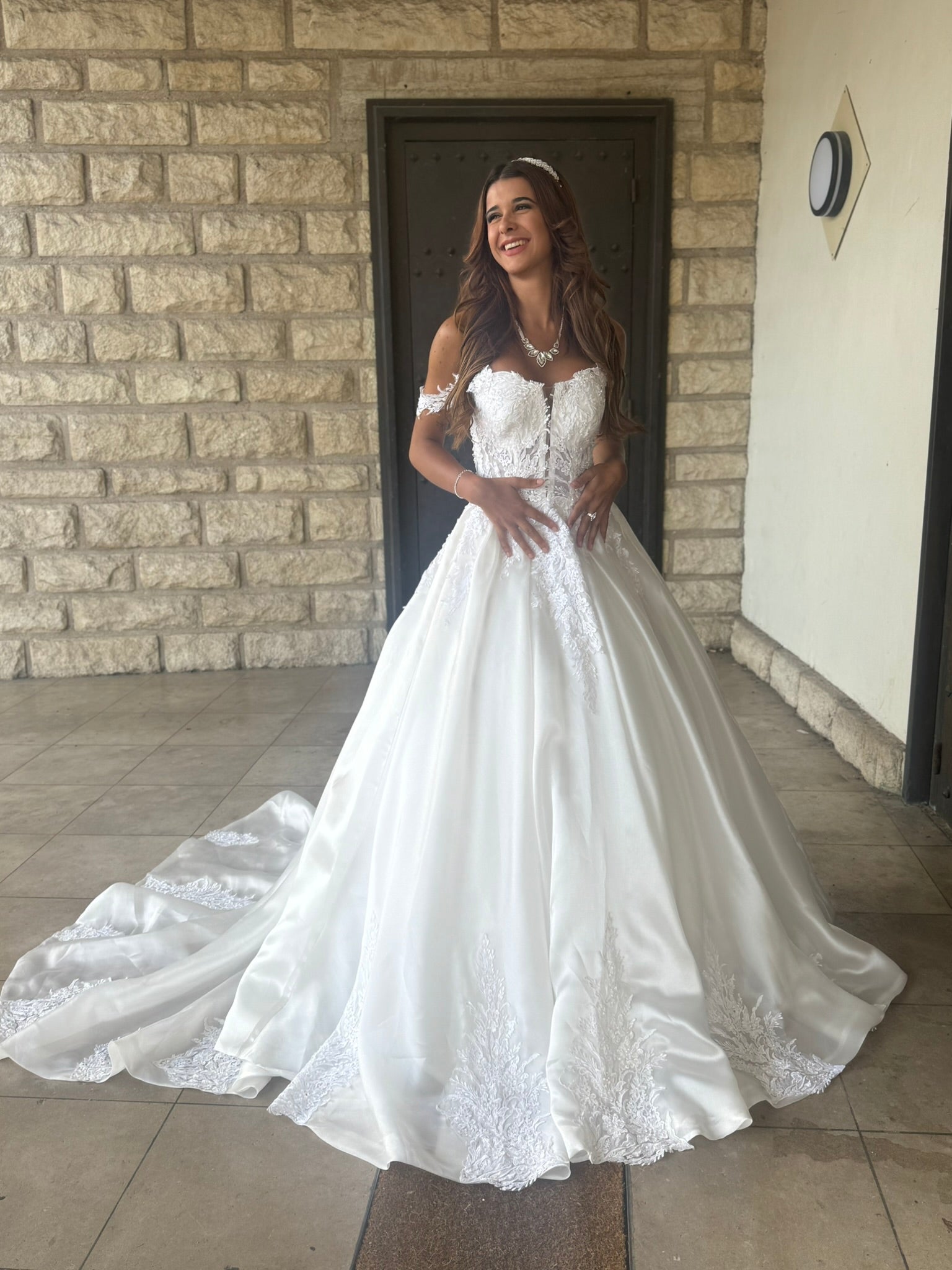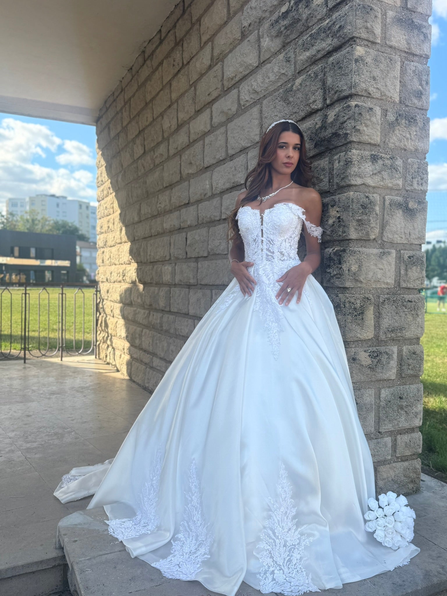 Faites une entrée remarquable avec cette somptueuse robe de mariée à bustier brodé, une création à la fois romantique et pleine de caractère. Elle allie l’élégance classique à des finitions modernes et raffinées.